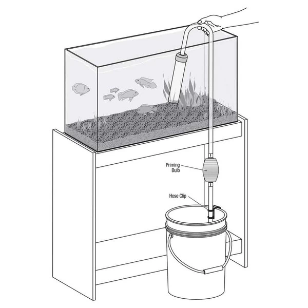 The Aqueon 10 inch siphon vacuum simplifies routine aquarium maintenance making water changes and substrate cleaning a breeze. The self-priming intake tube starts quickly, sucking dirt and debris from the substrate and leaving the gravel where it belongs. Includes: 6 ft. flexible hose, self priming intake tube, and hose clip. Ideal for 15 to 55 gallon tanks. Bulb included to aid in priming the siphon.