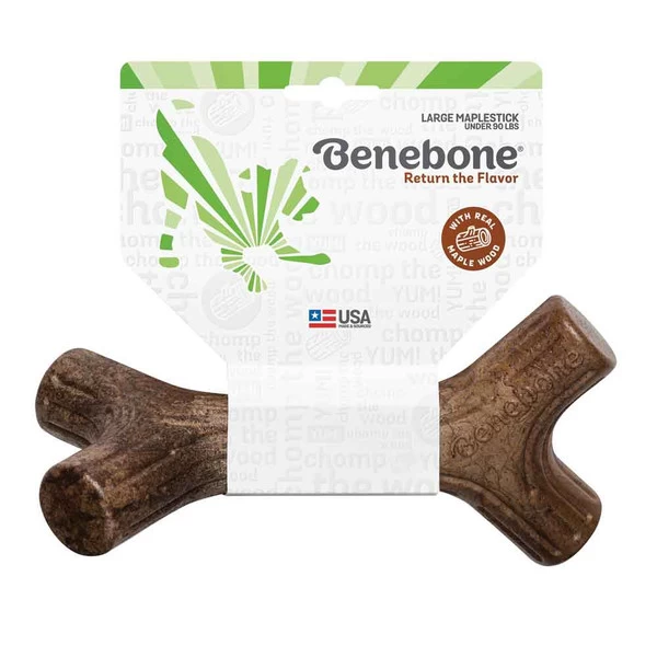 In life, generally the real thing is better than the imitation. But every once in a while, something comes along that’s better than the real thing. Maplestick is made with nothing but maple wood and nylon, for a durable fetch toy which will have dogs ditching regular sticks.The Maplestick is a nylon/wood mix and it has a bit more “give” than our other flavored nylon chew toys. Medium size is designed for dogs under 90 lb. 4 in. x 5.5 in.