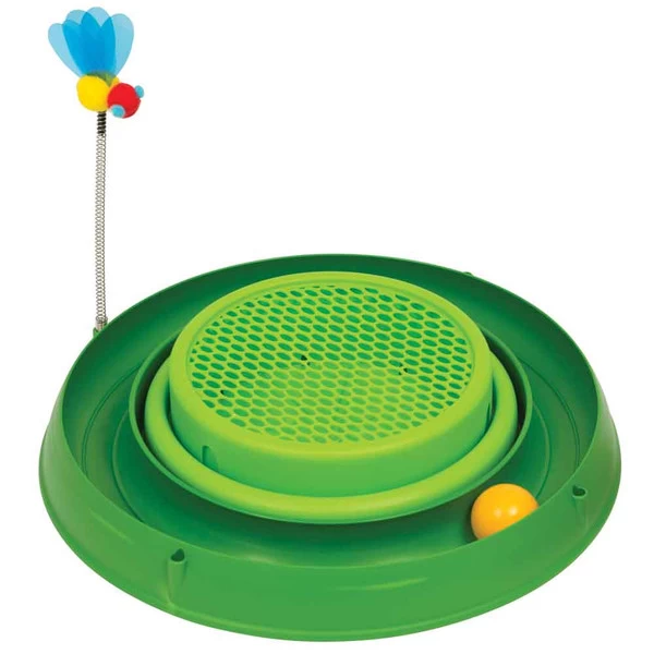 You really couldn’t combine more boredom-busting, healthy play and excitement into one cat toy! The Circuit Ball Toy with Grass Planter features an area for cat grass in the center. Cat grass is healthy and stimulates natural behaviors in your pets. Surrounding the cat grass is a circuit ball toy for endless hours of batting and chasing. Finally, this toy features a cardboard scratch pad and a springy bouncy bee for endless bouncy games! Great for one or multiple cats. 14.8 in. x 14.17 in. x 3.07 in.