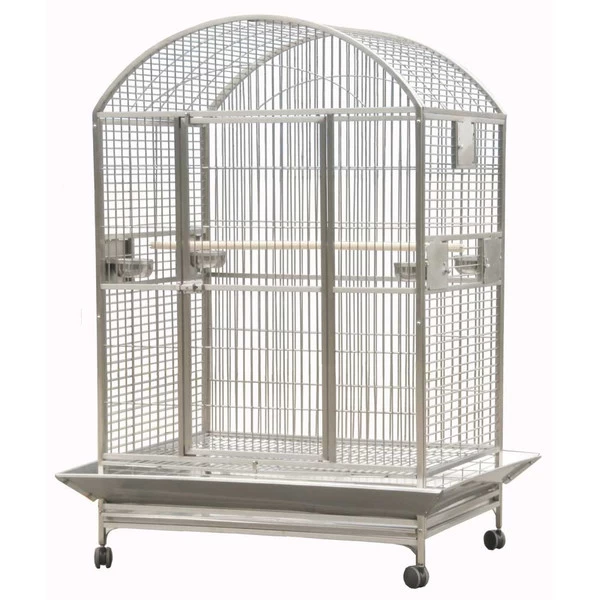 - 4 stainless steel feeder cups and perch