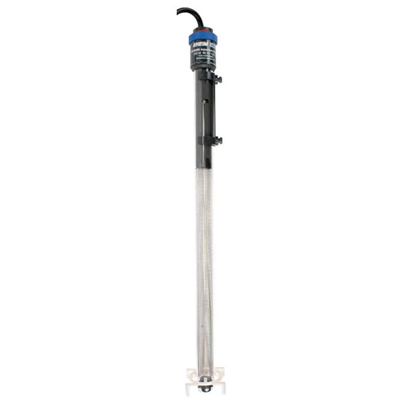 New and improved design is now fully submersible! Automatic aquarium heater is for both fresh and saltwater aquariums. Unit has a precision bi-stable thermostat with plus or minus 1/2 degree F holding temperature. Temperature is now easier to set with a new dial and accurate 1 in. increments from 65 to 93 degrees. Jagers have a 2mm thick thermal shock resistant glass vs. the common 1mm thickness for and extra sturdy construction. Heater also includes a 6 foot double insulated power cord, and a convenient clip-on heater holder.