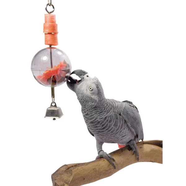 Caitec’s Foraging Sphere is the ideal toy for satisfying your bird’s natural instincts! The unique toy allows you to fill the sphere with your bird’s favorite treats and chews. You can also skewer their favorite natural fruits and treats for added fun! Includes a clanger bell!
