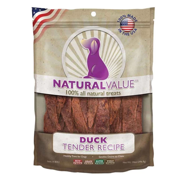 Natural Value Duck Tenders are 100% farmed and made in the U.S.A. Cooked on open grilling racks to reduce fat and give them a delicious flavor, Loving Pets duck tenders are sure to be your dog’s favorite treat.