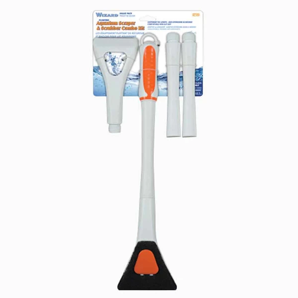 The Penn Plax Wizard Scraper and Scrubber comes with an extendable handle, making it easier than ever to clean your deeper aquariums! The user friendly design includes an easy comfort grip handle along with scrubber and scraper attachments that effectively remove algae and other waste that clings to your aquarium glass! The combo also floats for easy retrieval! For glass only.