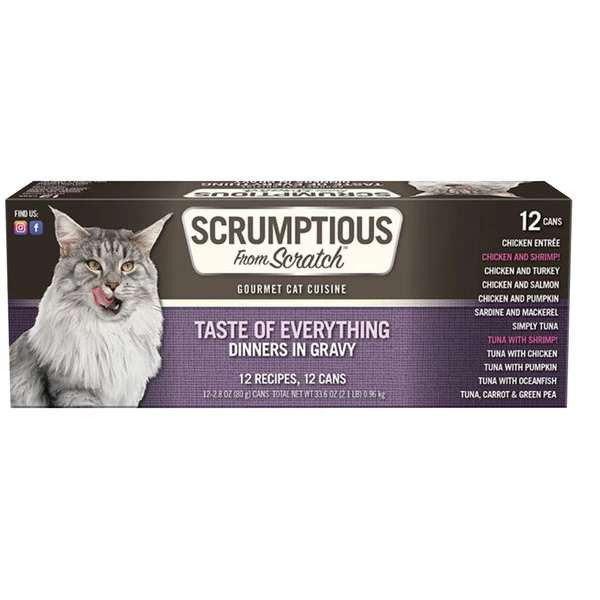 Scrumptious From Scratch recipes have large shredded cuts of meat or flaked seafood with no mechanically deboned meat (MDM) and no meat by products. The cat formulas are grain free, gluten free, carrageenan free and feature human grade-meats. They contain no corn or wheat, no animal by-products, and are free of artificial colors, flavors, or preservatives.