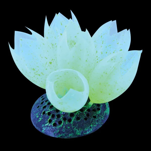 Awesome ornament looks extra glowing under an actinic light and also works as an aerator when attached to an aquarium air pump. 7.48 in. x 6.02 in. x 7.4 in.