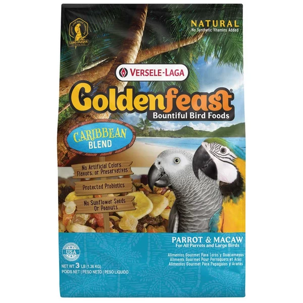 Goldenfeast® delivers a natural bounty of luscious, natural ingredients from all over the world. Companion birds will enjoy foraging through dried fruits and vegetables, assorted nuts, legumes, seeds, and ancient grains. Just like in nature, Goldenfeast® diets are free of artificial colors, preservatives, and flavors and do not contain synthetic vitamins. Protected probiotics are added to help support immunity and gut health.