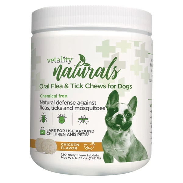 Vetality Natural’s Oral Flea Chews for dogs is a natural oral chew flavored with real chicken flavor that naturally repels fleas, ticks & mosquitoes before they bite. Your dog will crave the chicken flavored chews, wagging their tail in anticipation for their daily pest prevention treat. What makes these oral chews unique and different is that they repel pests preventing them from landing on the skin and taking a blood meal from your pooch.