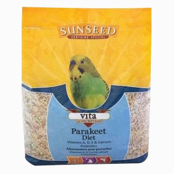 Vita Sunscription Parakeet is a daily diet with tropical fruits apples and vegetables rich in vitamin A. The addition of vita-bite crumbles adds vitamins and minerals normally not found in straight seed. This colorful delicious formula has been fortified with added calcium necessary for all life stages.