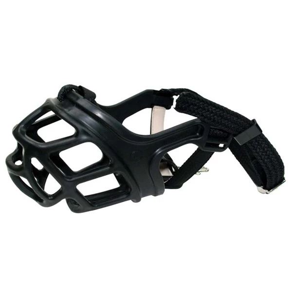 Keep your Dog under control and on good behavior with the Zeus Alpha Dog Muzzle. The Alpha Dog Muzzle helps to control biting, barking, and chewing while still allowing your dog to drink, pant, and accept treats. These muzzles are made from tough, flexible thermo plastic rubber. The basket like shape has large openings allowing air to flow through and prevent overheating. The head and neck straps are easy to put on and are adjustable to fit your dog’s needs. The muzzle also features a safety hook which loops onto your dog’s collar ensuring that the muzzle stays put. Top length: 3.1 in. Bottom length: 4.7 in. Circumference: 13.3 in.