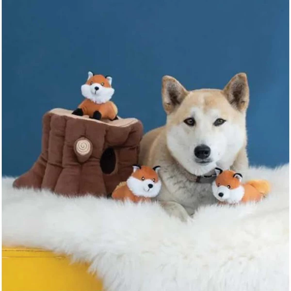 For a fantastically fun time, put the trio of squeaky foxes inside the Zippy Burrow Fox Stump and watch as your pup works to flush them out. Once your playful pup has them all out, they’ll be begging you to put them back in again and again for hours of fun. It’s the perfect interactive toy for keeping your dog busily engaged in hide-and-seek play that prevents boredom and promotes mental stimulation. This extra-large interactive hide-and-seek toy comes with 1 stump and 3 squeaky foxes. Burrow size: 10 x 10 x 6.5 in