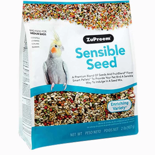 Feel good about letting your bird indulge in this new all natural seed blend by ZuPreem! Sensible Seed is a premium blend of seeds and FruitBlend flavor smart pellets that keep your feathered friend happy and engaged. And with larger sized pieces, Sensible Seed also cuts down on wasted food, making it the smartest choice for you and your bird.